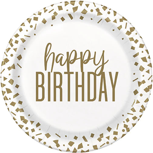 8 Platos Confeti Dorado Happy Birthday