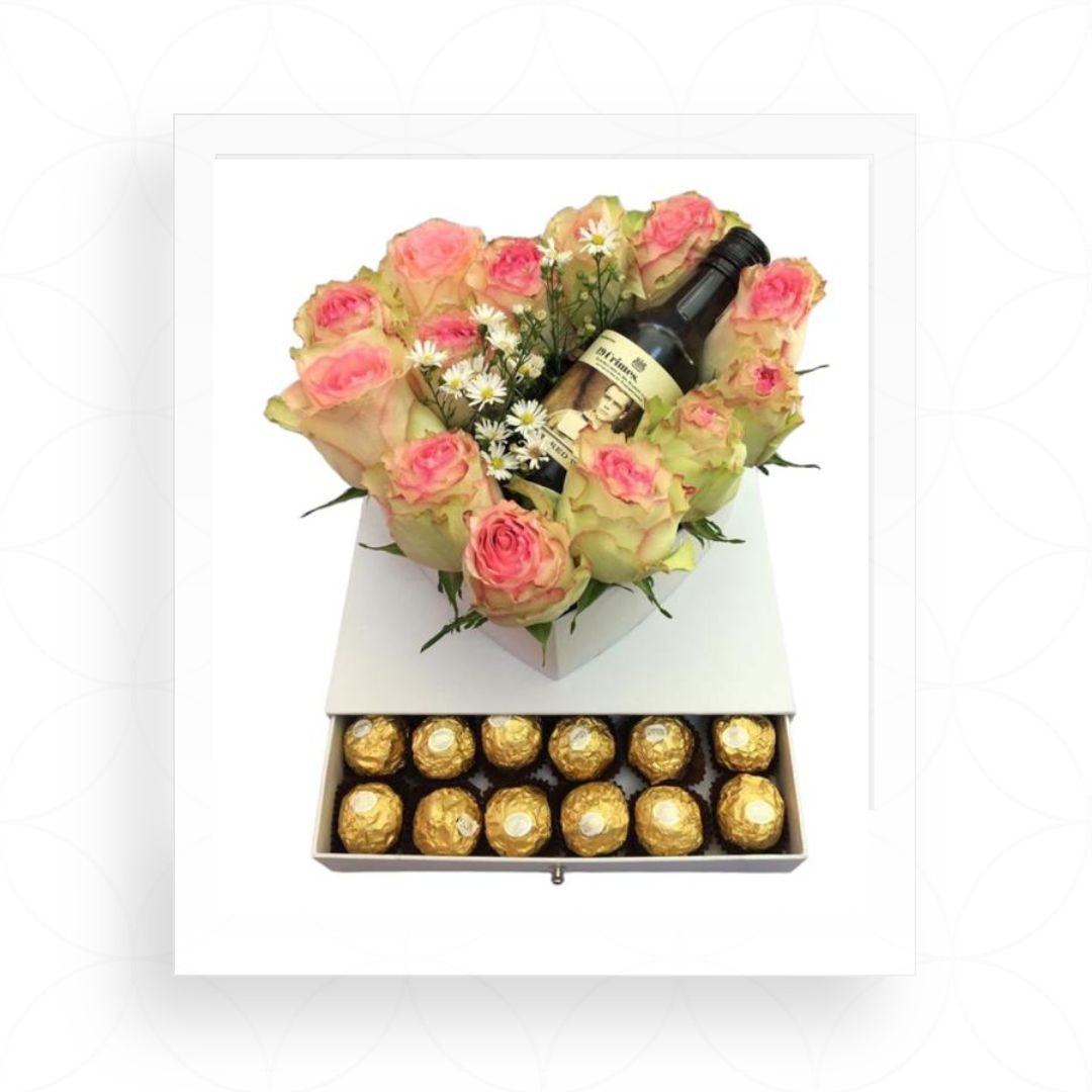 Arreglo 12 flores + mini vino 19 crime