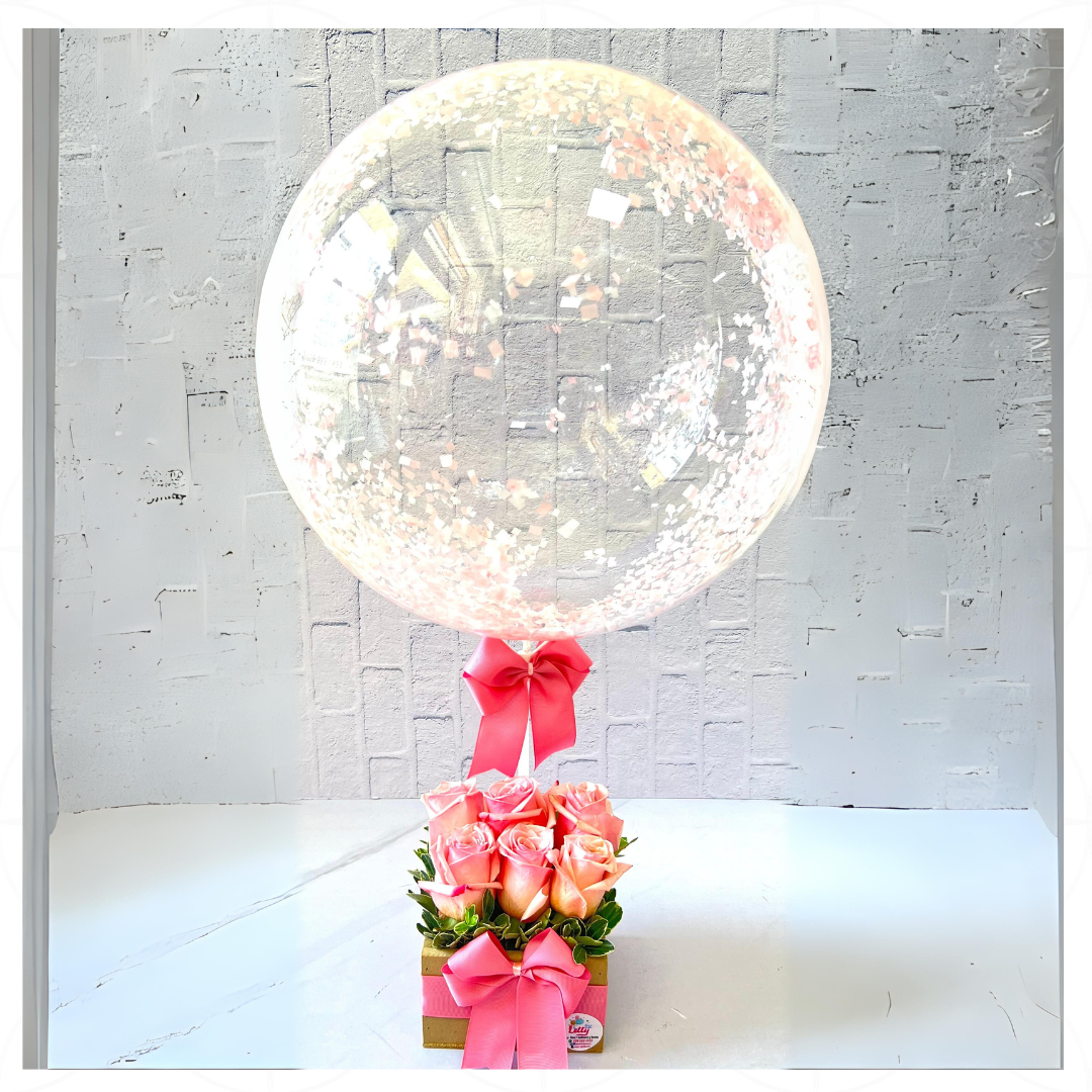 Arreglo 6 flores + burbuja personalizada